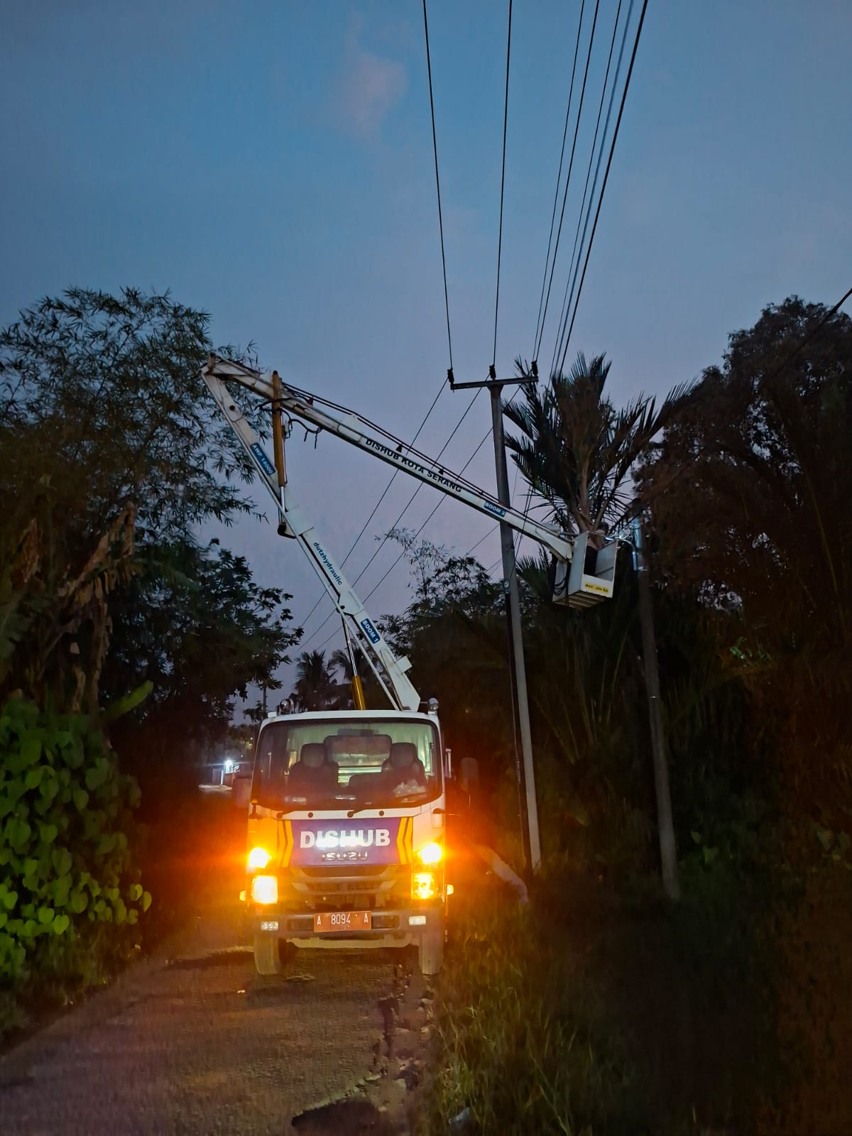 Kegiatan penerangan jalan umum(PJU)Dinas Perhubungan Kota Serang Perbaikan jaringan royal baroe.
